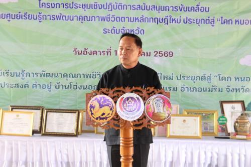 🎯▶️ นายบุญลือ ธรรมธรานุรักษ์ รองผู้ว่าราชการจังหวัดเชียงใหม่ เป็นประธานในพิธีเปิดโครงการประชุมเชิงปฏิบัติการสนับสนุนการขับเคลื่อนเครือข่ายศูนย์เรียนรู้การพัฒนาคุณภาพชีวิตตามหลักทฤษฎีใหม่ ประยุกต์สู่ “โคก หนอง นา” ระดับจังหวัด โดยมีวัตถุประสงค์ เพื่อให้คณะทำงานเครือข่ายขับเคลื่อนศูนย์เรียนรู้การพัฒนาคุณภาพชีวิตตามหลักทฤษฎีใหม่ ประยุกต์สู่ "โคก หนอง นา" ระดับจังหวัด สามารถสนับสนุนการขับเคลื่อนศูนย์เรียนรู้ ฯ ให้เกิดผลอย่างชัดเจนเป็นรูปธรรม โดยมีกิจกรรม ดังนี้