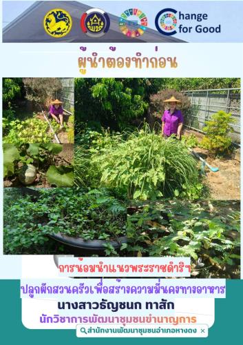 อำเภอหางดง โดยสำนักงานพัฒนาชุมชนอำเภอหางดง นำโดย นางสาวชลธิชา คีรีพาเจริญกุล พัฒนาการอำเภอหางดง มอบหมายและสนับสนุนเจ้าหน้าที่สำนักงานพัฒนาชุมชน ดำเนินการขับเคลื่อนปฏิบัติการ “ทำก่อน นำก่อน” ภายใต้กิจกรรม “QUICK WIN 90 วัน ปลูกผักสวนครัว เพื่อสร้างความมั่นคงทางอาหาร”